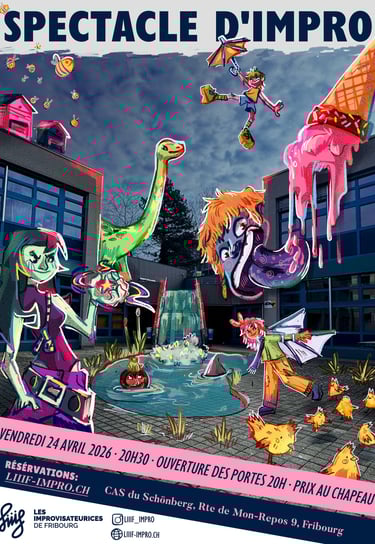 Découvrez nos spectacles d'improvisation théâtrale à Fribourg et suivez nous sur les réseaux
